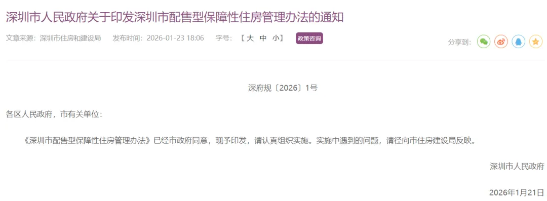 上周深圳对配售型保障性住房落下涵盖规划计划、建设筹集、建设项目管理、配售型保障性住房的申请条件、配售方式及流程、封闭管理、使用监管等内容的发布,正式宣告深圳的可售型保障性住房进入完全封闭流转的模式。