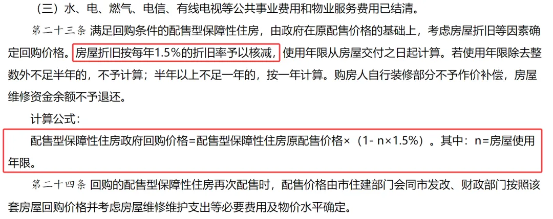 比如2025年8月18日连云港发布的《连云港市市区配售型保障性住房管理办法》显示,配售型保障性住房的回购价为配售型保障性住房原配售价格×(1- n×1.5%),房屋折旧按每年1.5%的折旧率予以核减,购房人自行装修部分不予作价补偿,房屋维修资金余额不予退还。