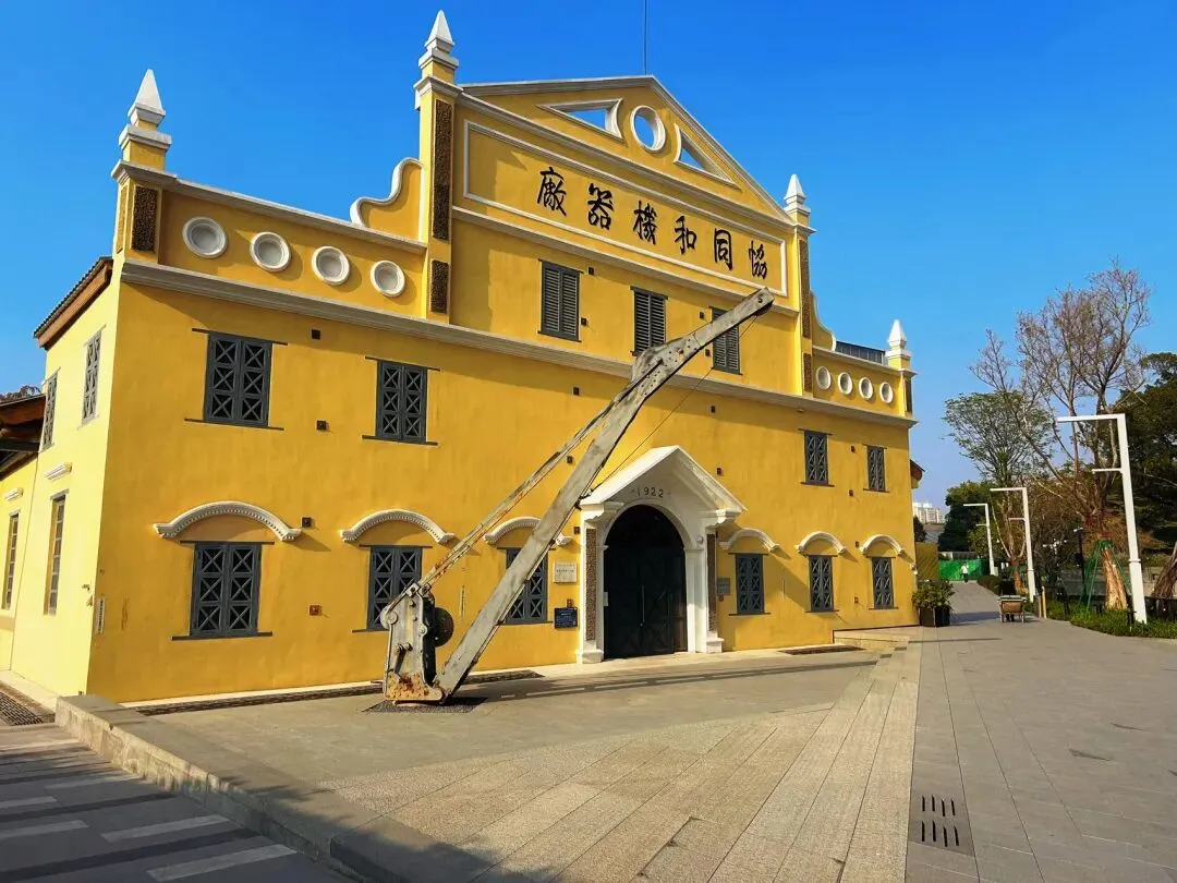 新潮的店铺旁边有时就可能出现联排的红砖仓库,高大的尖屋顶,平展归一的门窗,一看介绍竟然是一百年前用于接纳江上泊来品的粮仓。几座古老的欧美机床矗立在旧厂房门口,通体结构完整,展现着一种机械化的力量之美。这些低调的景点隐藏于太古里光艳的现代化楼群之中,却是人们最喜欢留影的目标。有一座披着民国时期广州城主色调的楼面引人注目,原来是建于1921年的旧机械厂主厂房,它的门面颇像澳门的大三巴牌坊。如今矗立门口的机械臂依旧保持着旧时姿态。黄楼的背后是一面照片打卡墙,每逢下午临近傍晚,这里的光线无比柔和,在此你不仅能拍摄出自己最酷炫的靓照,还有极大可能遇到网络大咖来此处休闲、散步。交通贴士: