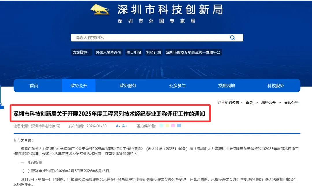 深圳市科技创新局关于开展2025年度工程系列技术经纪专业职称评审工作的通知