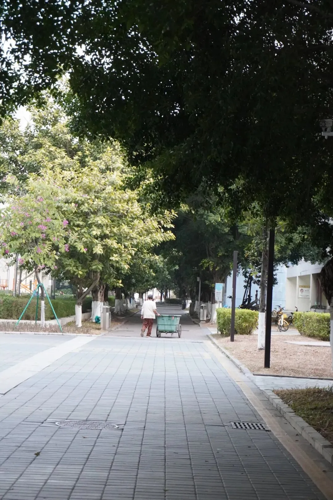 落叶踩响像薯片一样,没有人的学校会有回声空荡。天气好起来,没有人的时候,耳边只有鸟鸣和后勤作业的声音,我们学校也像公园一样。我没有办法完全拍下我的学校,因为它像家里的客厅一样熟悉。我只能告诉你,我曾经坐在哪个地方,散步、吐槽、嘻嘻哈哈、奔波、和人谈心。