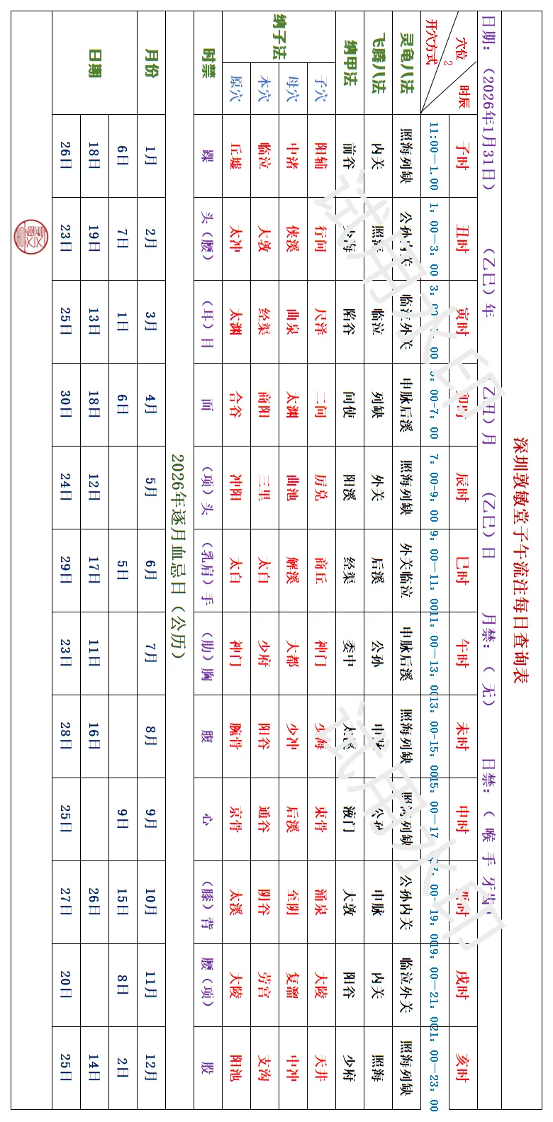 >深圳敦敏堂《子午流注:今日开穴》 2026 1月31日
