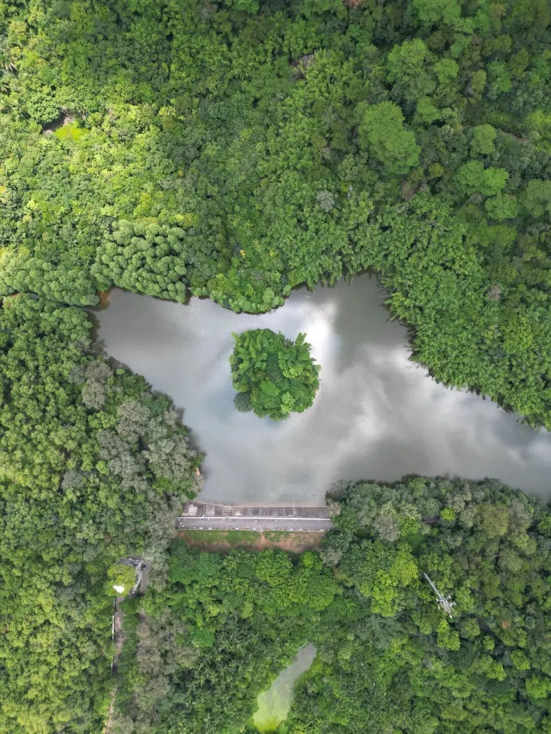 山塘水库中的湖心岛,有一池的落羽杉