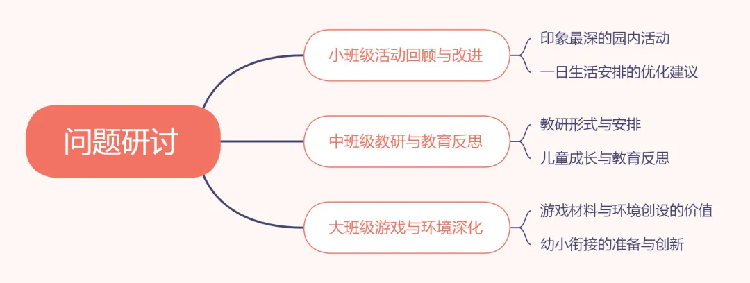 教学部门梳理了六个针对不同年级的问题进行研讨,以问题为导向帮助教师解决在日常教育教育工作中遇到的现实困惑。