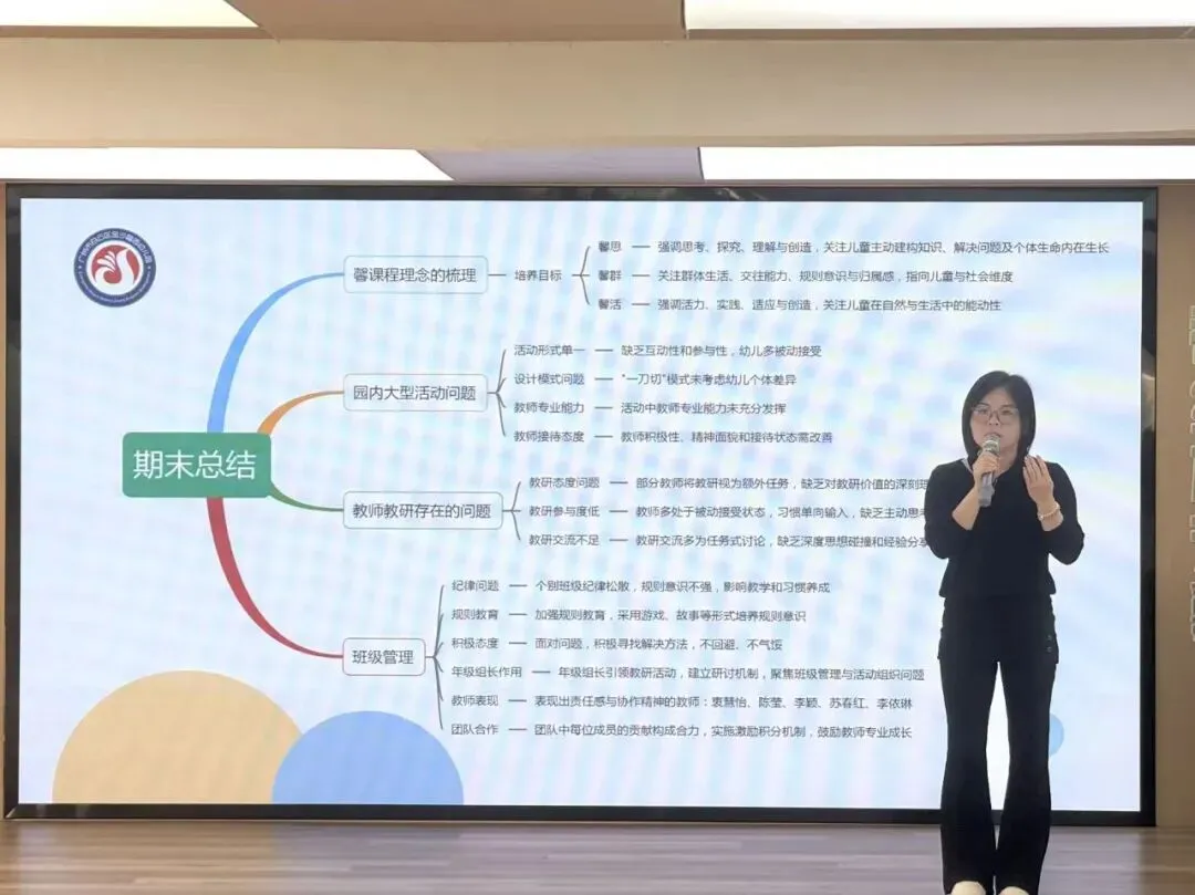 本学期,教学部始终秉持“以幼儿发展为本”的理念,科学有序地组织幼儿一日生活。张园长围绕教师专业成长、幼儿全面发展家园协同共育等重点领域扎实推进工作,回顾中肯定了全体教师的辛勤付出与显著进步,同时也强调需持续深化学习与研讨,不断夯实理论根基、丰富实践经验。