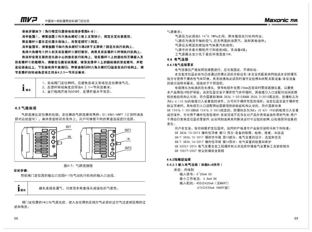 - 本安型定位器必须与已通过防爆认证的关联设备配套使用。