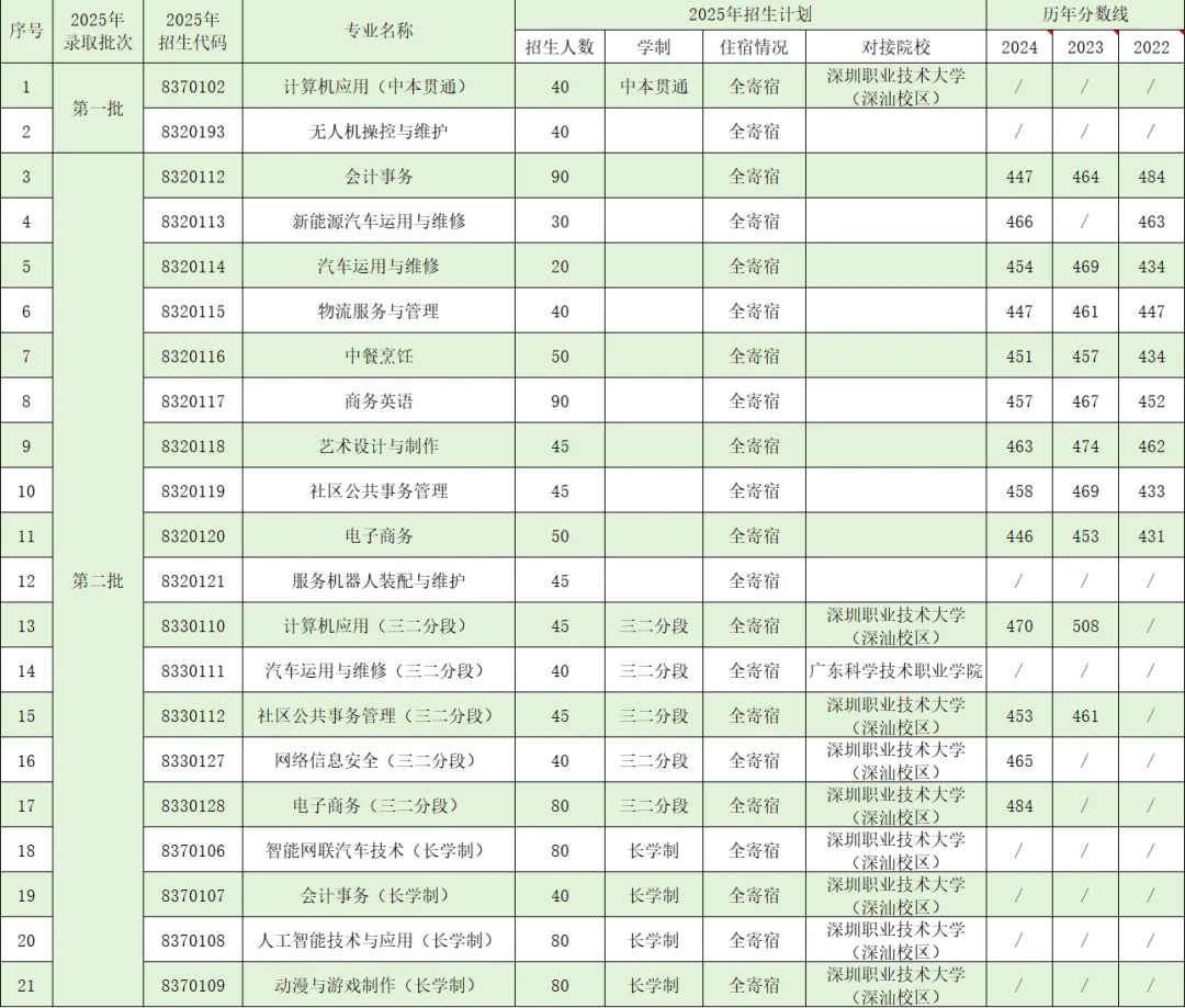 6.2025级对接深圳职业技术大学的中本贯通、三二分段和长学制等班级,高职办学地点均在深圳职业技术大学深汕校区。