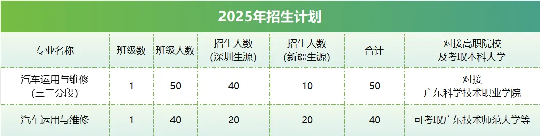 新能源汽车运用与维修专业开办于2020年,是我校近几年新开且重点发展的专业之一。目前在校学生280人,是本地学生与新疆中职班学生开展“混班教学、混合住宿”的试点专业之一,同时招收深圳本地生源和新疆中职班生源。