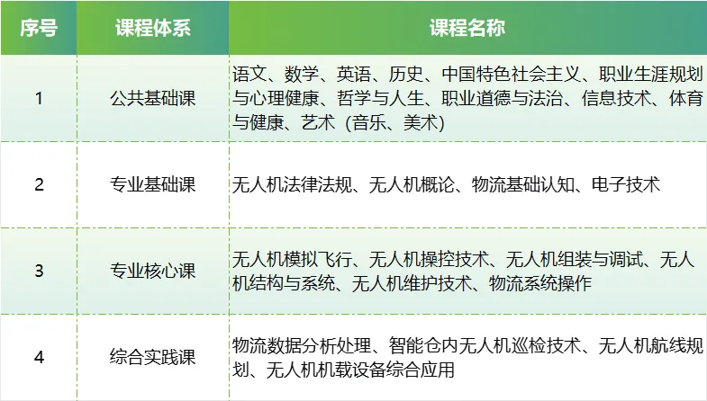 无人机操控与维护专业面向通用航空生产服务、航空航天器修理等行业的无人机装调检修工、无人机驾驶员等职业,培养从事无人机驾驶、无人机装调、无人机维护、销售、生产、行业应用(低空物流配送、航拍、巡检、数据收集)等工作的技能人才。