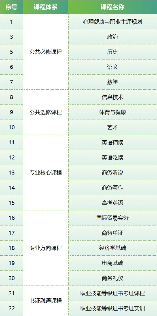 商务英语专业是我校高考优质率最高的专业。该专业致力于培养具有广阔国际视野、深厚中西文化融合能力、良好的综合文化素质、扎实的英语语言基础、高水平的听说读写能力,以及具有一定的国际商务基础理论和专业知识、良好的职业道德和较高的职业技能的中初级人才。毕业生能够出国留学、国内升学、或进入跨境贸易、英语教学和办公室等文职类初、中级岗位。