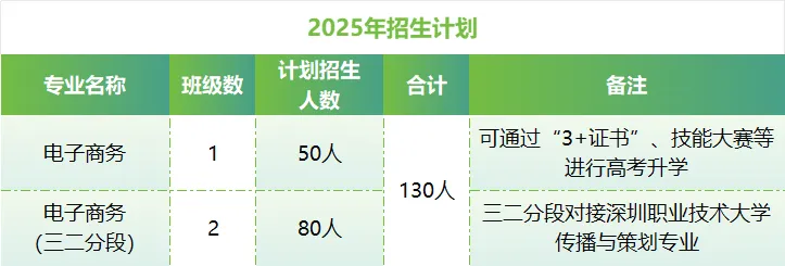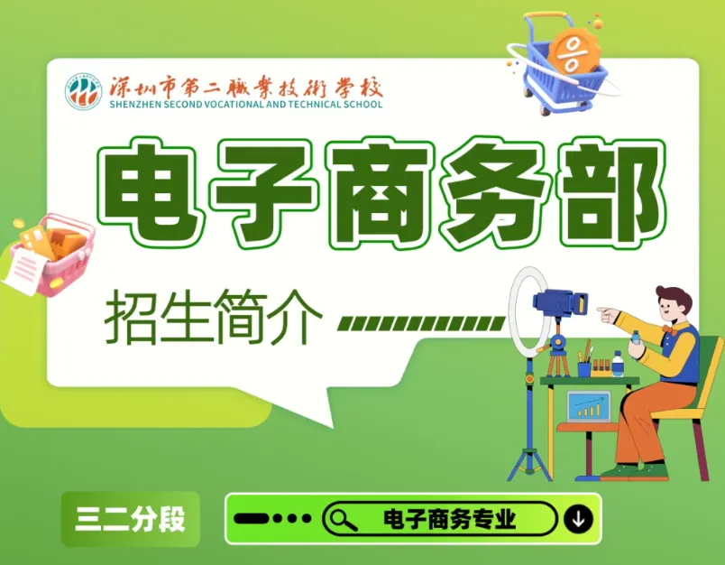 高考全覆盖,成才多通道。专业学生可考取“1+X网店运营”“1+X自媒体”证书,近三年,电子商务专业学生高考上线率达100%,进入深圳职业技术大学、深圳信息技术学院深造。