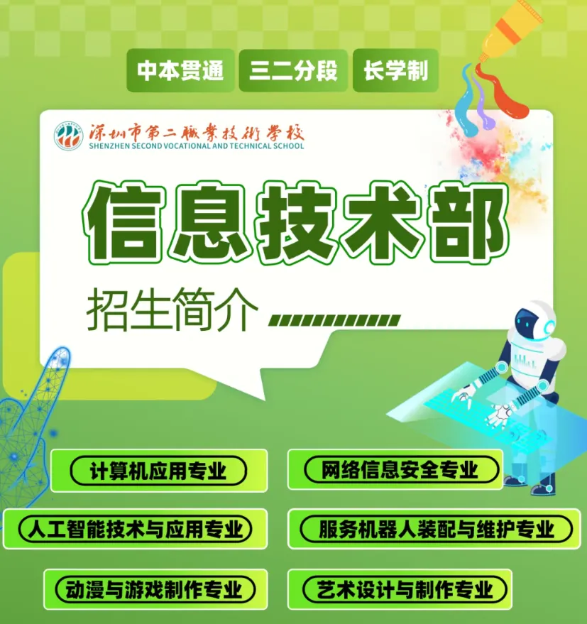 人工智能技术与应用专业成立于2024年,为大湾区、社会主义先行示范区“双区”发展培养新一代信息技术人工智能领域高素质应用技能型人才。它是全国中职教育的最新专业之一,是在国家大力发展人工智能产业,政府工作报告首倡“人工智能+”行动,深圳积极打造国家新一代人工智能创新发展试验区和创建人工智能先锋城市的背景下应运而生的专业。