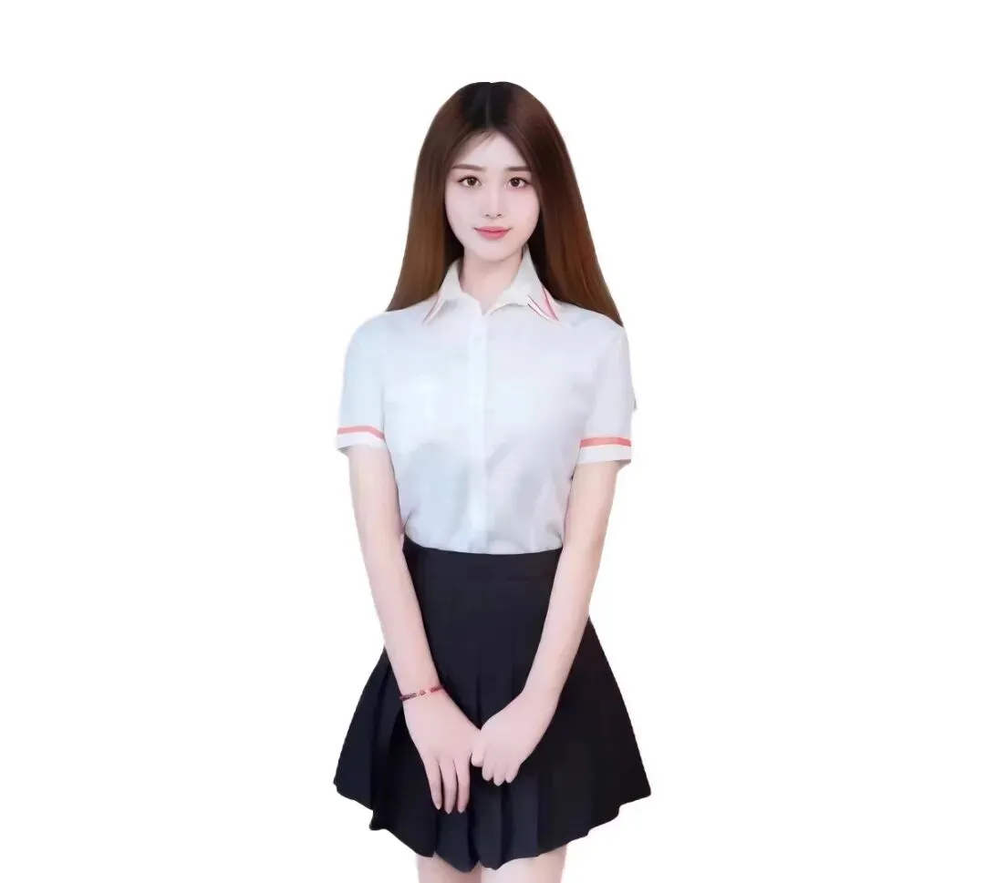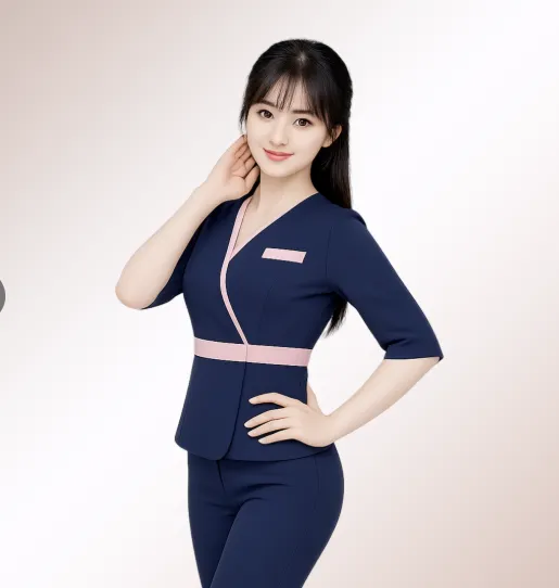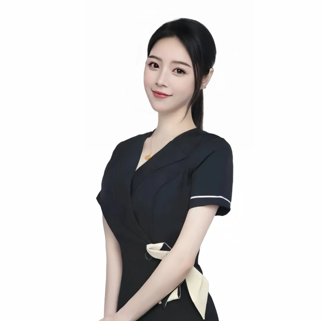 美女技师站在门外,白衬衫的袖口挽到小臂,