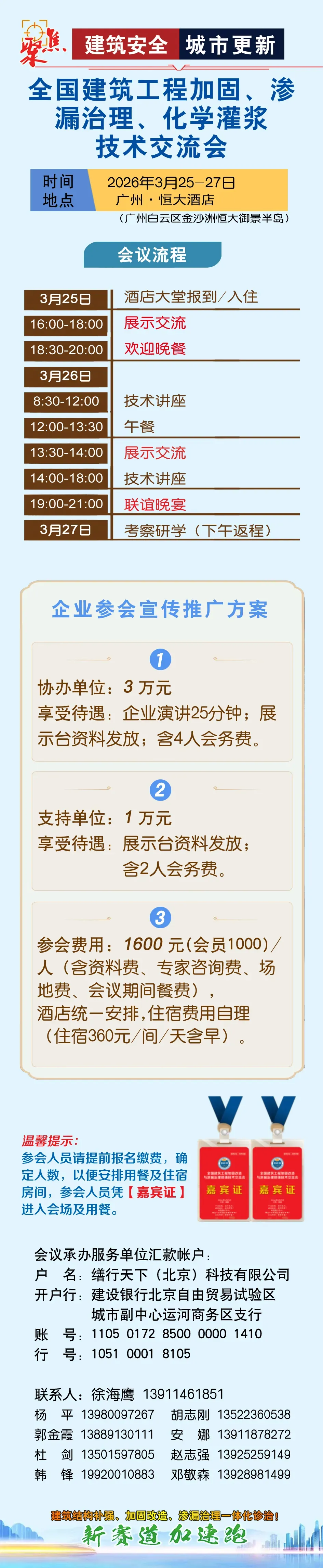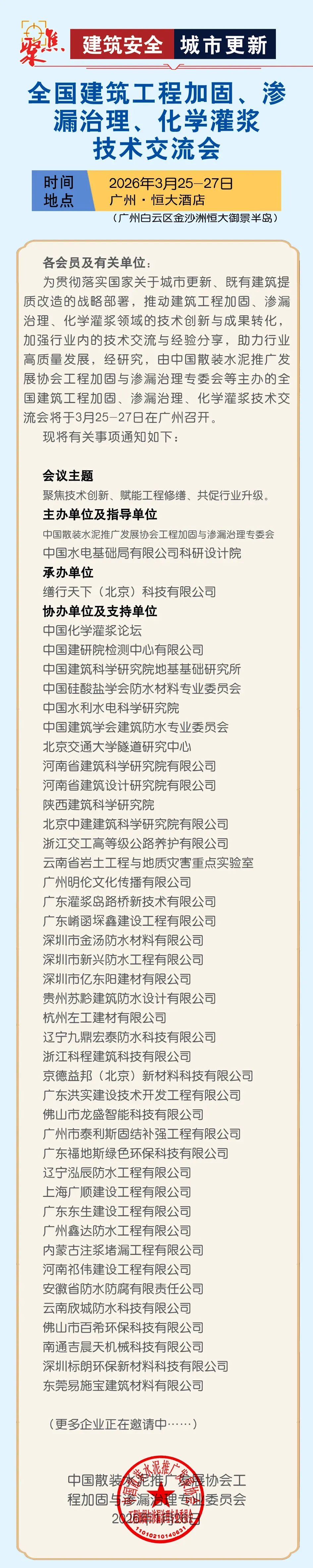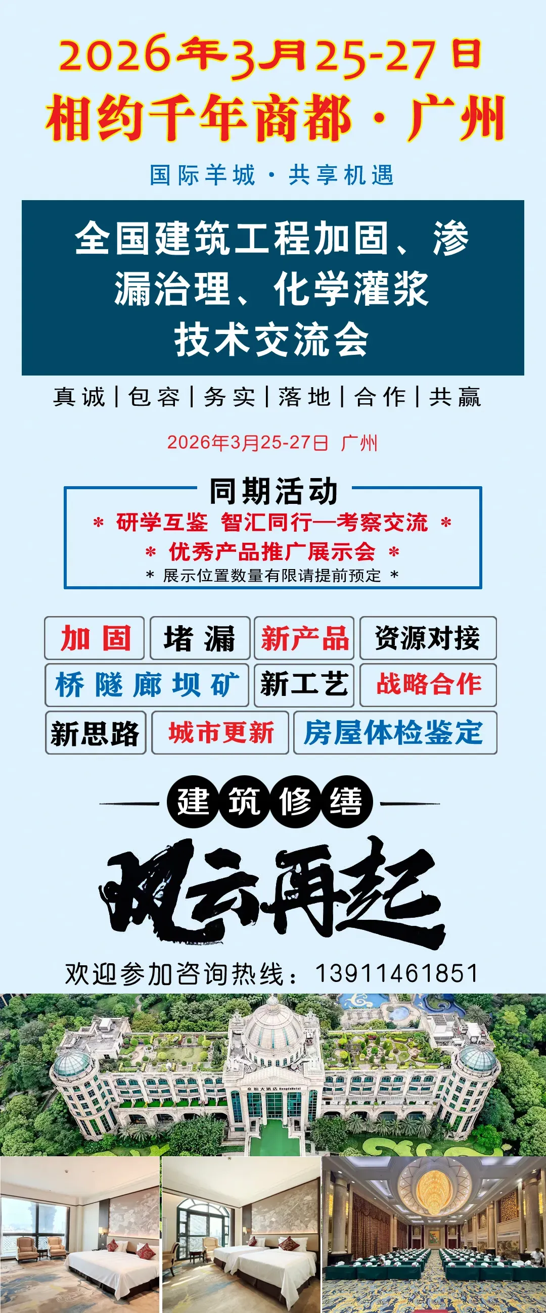 >广州 3.26 || 全国建筑工程加固、渗漏治理、化学灌浆技术交流会