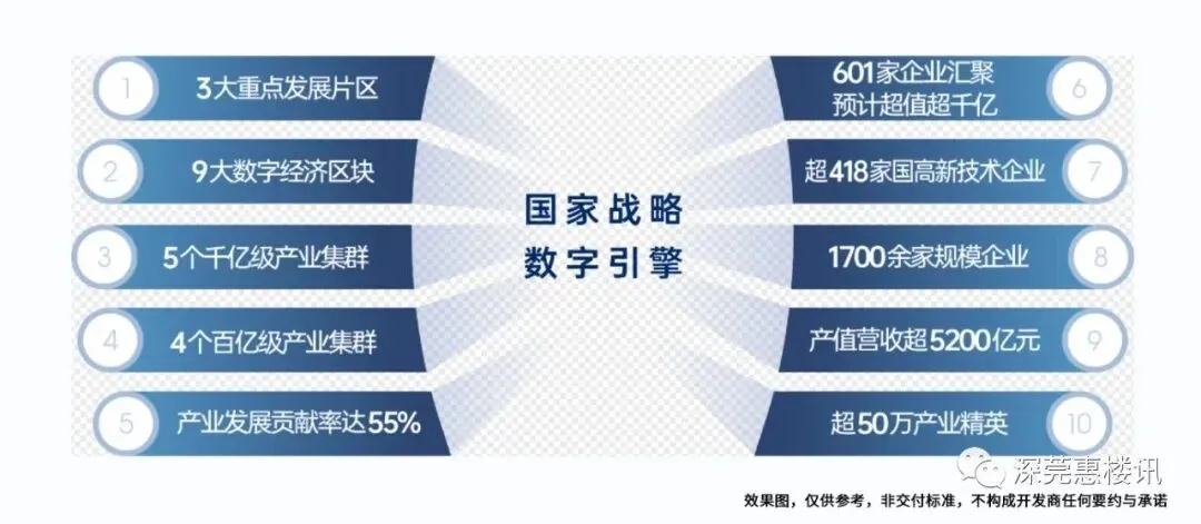 布局城市群战略,观澜作为数字经济扛鼎者,独占9大产业区块,重点发展5G、人工智能等高新技术产业,打造新一代数字经济总部基地。