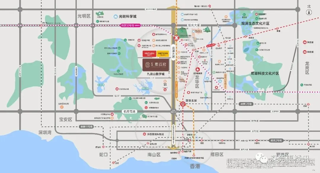 主干道:临近龙澜大道、观光路等主干道,接驳福龙路、侨城东路北延通道,快速通达深圳各区;