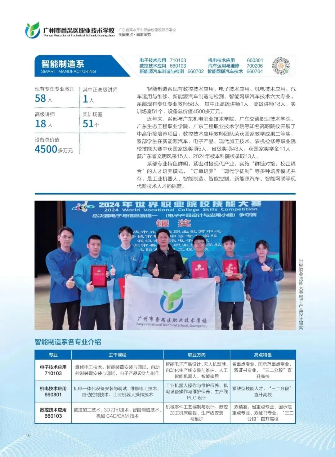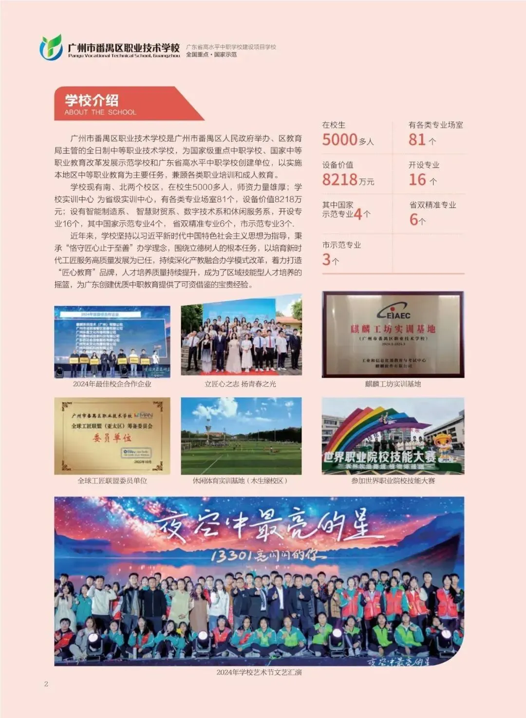 广州市番禺区职业技术学校是广州市番禺区人民政府举办、区教育局主管的全日制中等职业技术学校,为国家级重点中职学校、国家中等职业教育改革发展示范学校和广东省高水平中职学校创建单位,以实施本地区中等职业教育为主要任务,兼顾各类职业培训和成人教育。
