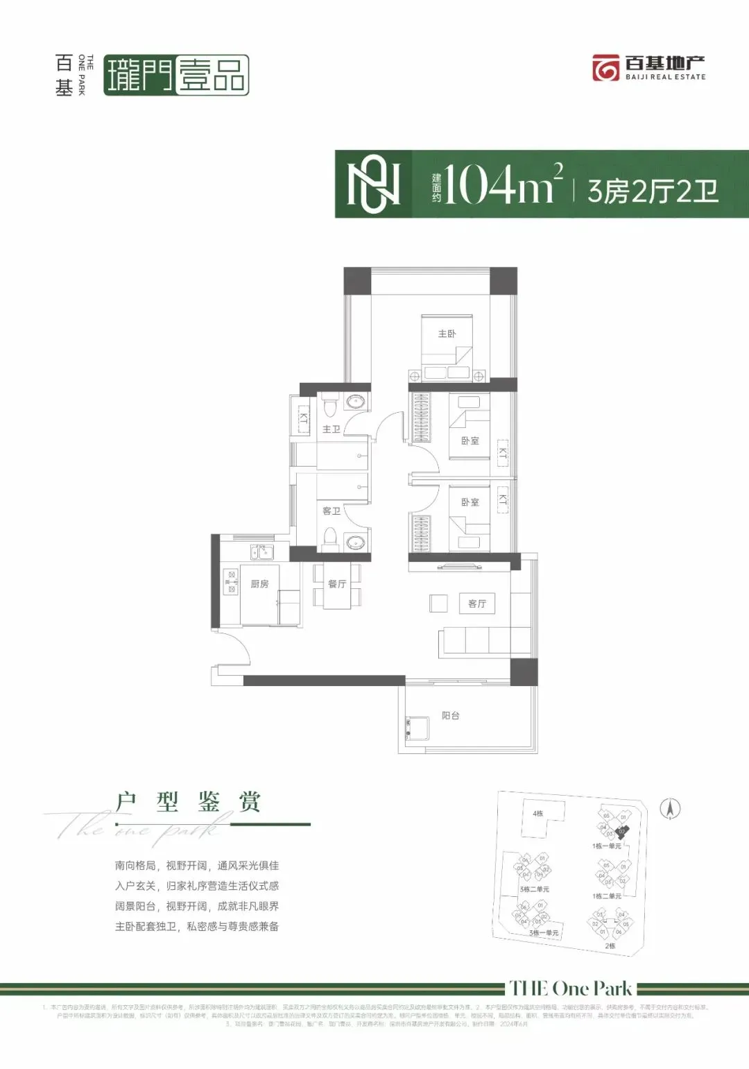 99㎡的3房2厅2卫,设计的是经典竖厅格局,进门入户玄关,客厅3.9米开间,LDKB一体化设计,动静分区,四开间朝南,主卧三面飘窗,U型厨房,卫生间干湿分离,得房率:71.29%(不含赠送),东南朝向。
