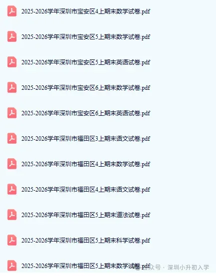 深圳小学期末考真题卷!免费!