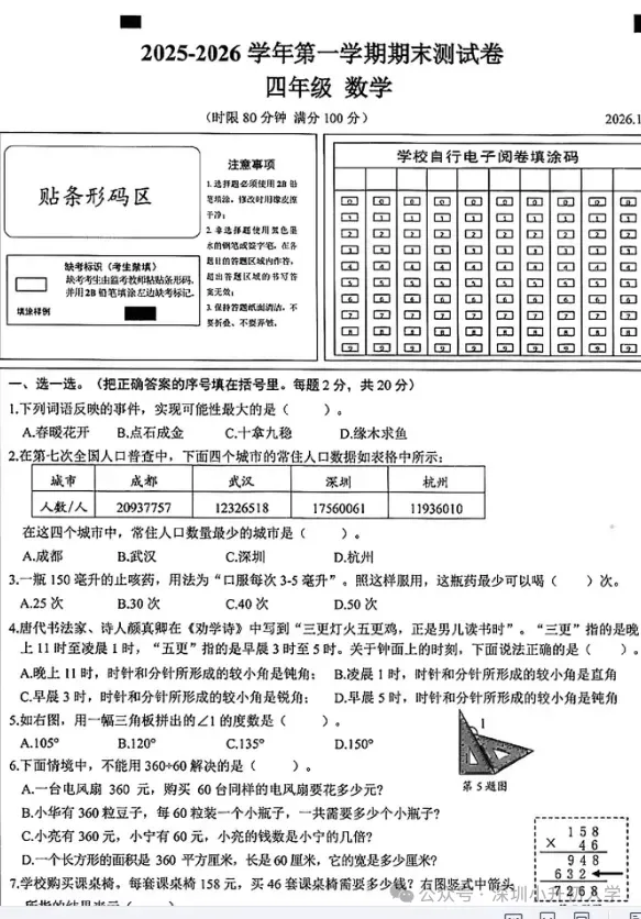 >深圳小学期末考真题卷!免费!