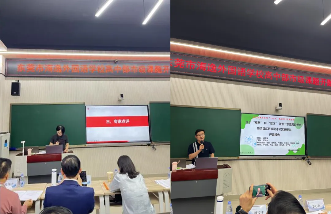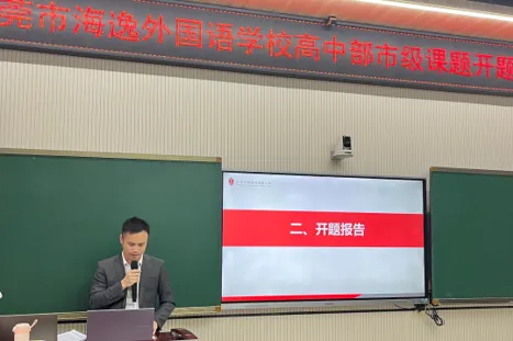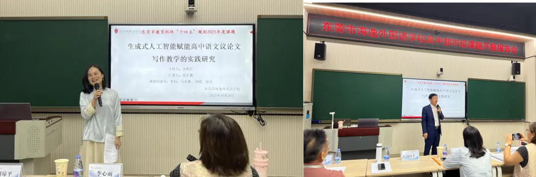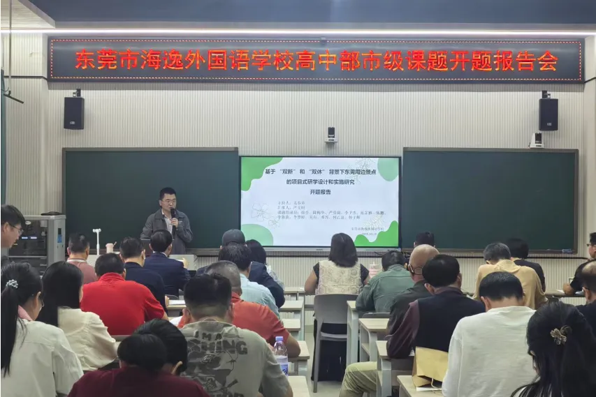 2025年10月28日,东莞市教育科研“十四五”规划2025年度课题开题报告会在东莞市海逸外国语学校成功举行。语文组课题《生成式人工智能赋能高中语文议论文写作教学的实践研究》与地理组课题《基于“双新“和“双休”背景下东莞周边最点的项目式研学设计和实施研究》两项课题正式开题。