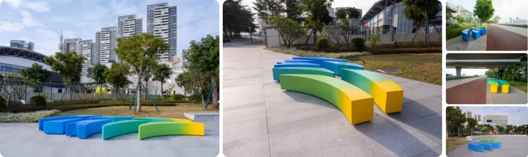 地图座椅、艺术家具既可休憩,也成为社交与拍照的背景。艺术不再只是观看对象,而是被使用、被参与、被分享的城市设施。