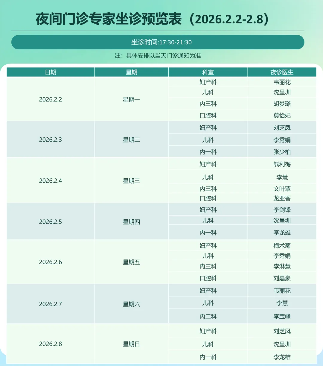 实际出诊以小程序为准