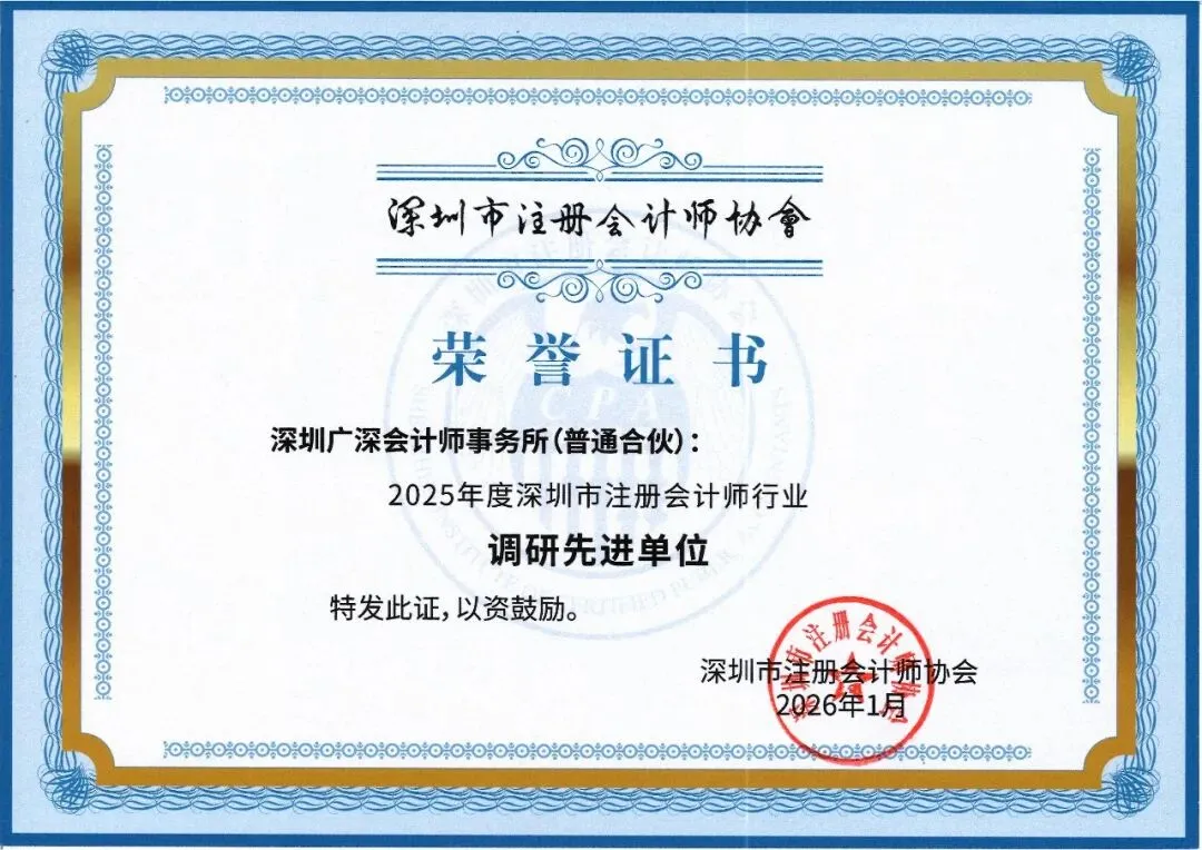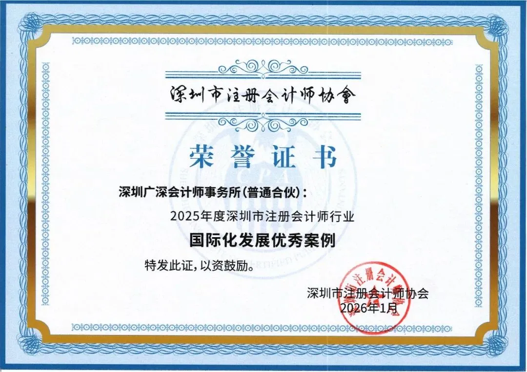 标杆,营造崇尚专业、追求卓越的良好氛围。广深会计师事务所荣获2025年度深圳市注册会计师行业国际化发展优秀案例奖、调研先进单位两项奖项。