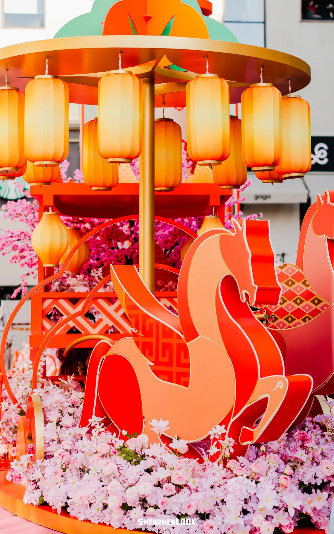 缓步踱至西广场,这里同样被精心装点成一个 “繁花似锦,灯转运来” 的新春乐园。