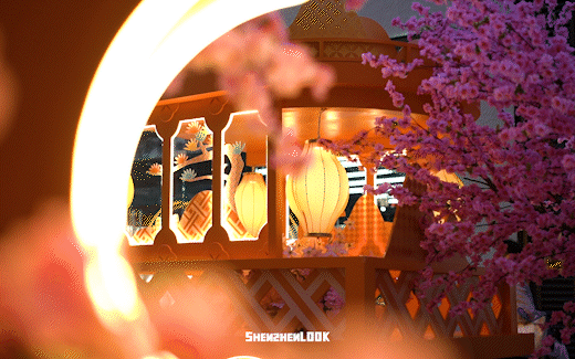 小镇以盛放的春花与流转的灯火为灵感,将花灯、桃花等传统年节元素巧妙融合,白天,这里是梦幻的春日游园会,入夜,一盏盏花灯渐次点亮,桃花在夜色中温柔盛放。
