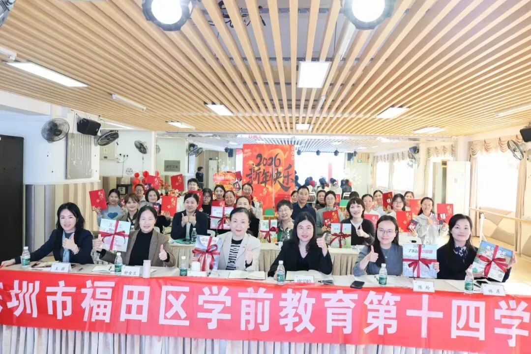 冬阳正好,岁序更新。为系统总结2025-2026学年第一学期工作成效,提炼经验,推广典型,进一步凝聚发展合力,深化集团化办学与学区化治理体系建设,深圳市福田区第一幼教集团、深圳市福田区学前教育第十四学区定于2026年1月28日在福田区第一幼儿园召开以“万马同舟济,鸿运启新元”为题的学期工作总结暨先进表彰大会。集团核心园、学区中心园陈玉文与成员园园长、专职督学、学区专干及受表彰教师代表等齐聚一堂,共商发展之计,凝聚奋进力量。