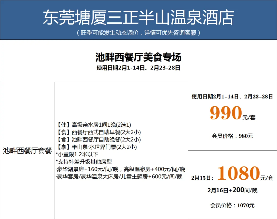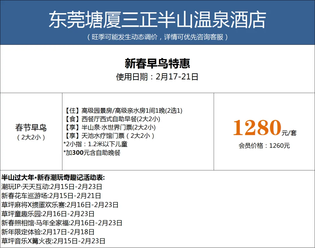 (旺季有可能会发生动态调价,落实日期以及所选套餐后请咨询客服查询房间)