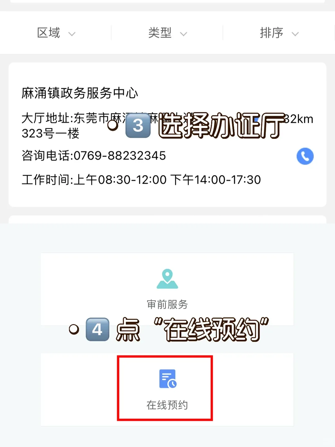 4.跟着指引完成选择,点击在线预约