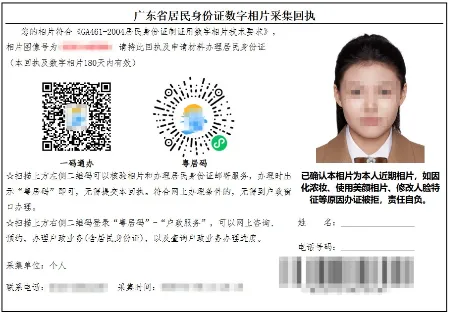 第二代居民身份证数字相片采集回执