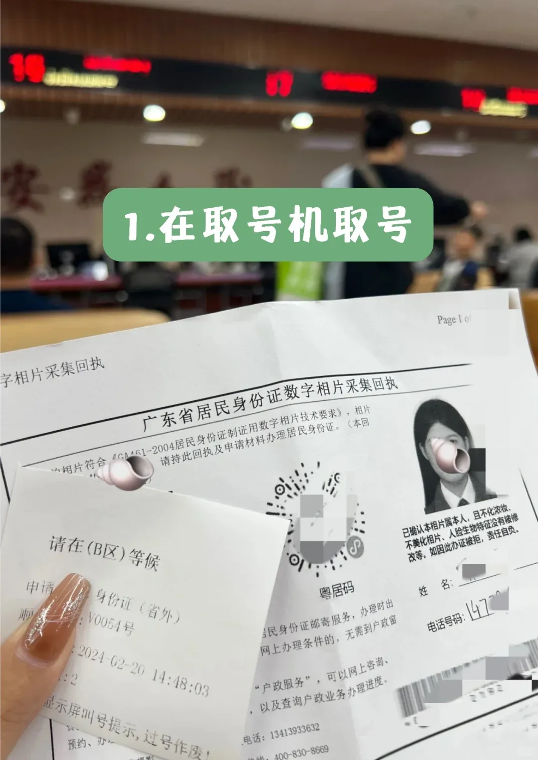 现场自取:按领取凭证提示时间,携带凭证和本人身份证(换领用户)到原受理窗口或自助机领取(广东省户籍 10-60 周岁可自助机领取)。