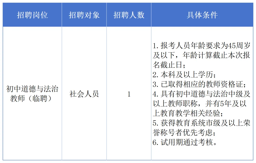 1.被聘用者为编制外合同制临时聘用教师,与学校签订劳动合同。聘期至2026年7月(实际聘期以上级批复及劳动合同为准)。