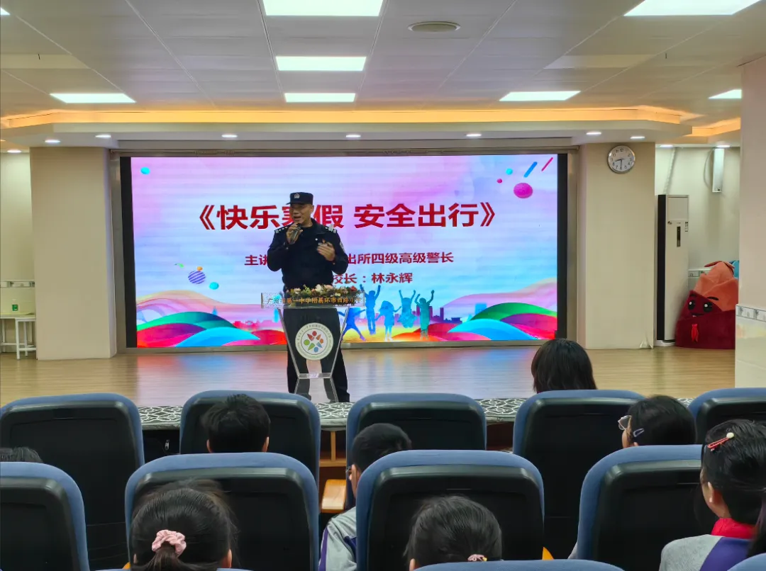 假期安全最重要,为了让同学们度过一个平安、快乐又有意义的假期,两个校区特意邀请了法制副校长带来安全小课堂。竹苑校区邀请到西村派出所四级高级警长林永辉警官,绿森林校区邀请到荔湾法院速裁庭副庭长李超彬同志。两位嘉宾用小朋友们听得懂的语言,结合身边常见的小故事,细致讲解了交通安全、消防安全、防溺水安全、网络安全和法治小知识,反复提醒大家时刻注意安全,学会保护自己,把安全准则记在心里、落到行动上,为假期保驾护航。