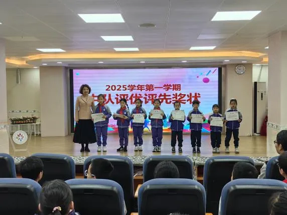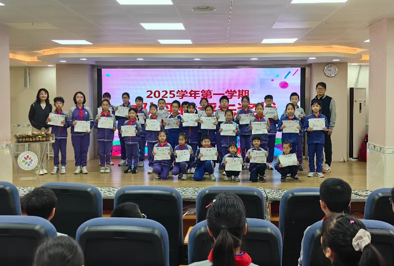 典礼上最让人开心的,就是表彰颁奖环节,两个校区分别为表现优秀的同学和中队颁奖。各校区对这学期在学习上刻苦努力、体育场上奋力拼搏、科技活动中积极探索的同学,以及团结友爱、班风优良的中队进行了表彰。获奖的同学和中队代表们昂首挺胸走上台,郑重接过属于自己和集体的奖状,脸上都洋溢着自豪的笑容。这一张张奖状,是对大家一学期努力的肯定,也激励着全体同学向榜样学习,共同进步。现场掌声不断,满是祝福与鼓励。