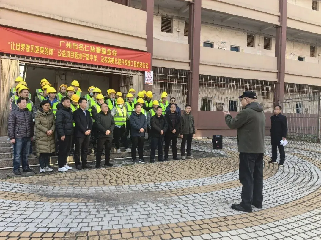 近日,广州市名仁慈善基金会“让世界看见更美的你”公益项目落地于都中学及校舍美化提升改造工程启动仪式顺利举行。活动由于都中学党委副书记、校长谭建民主持,学校领导班子成员、基金会代表及施工方负责人共同出席,一同见证公益力量与教育事业交融的重要时刻。