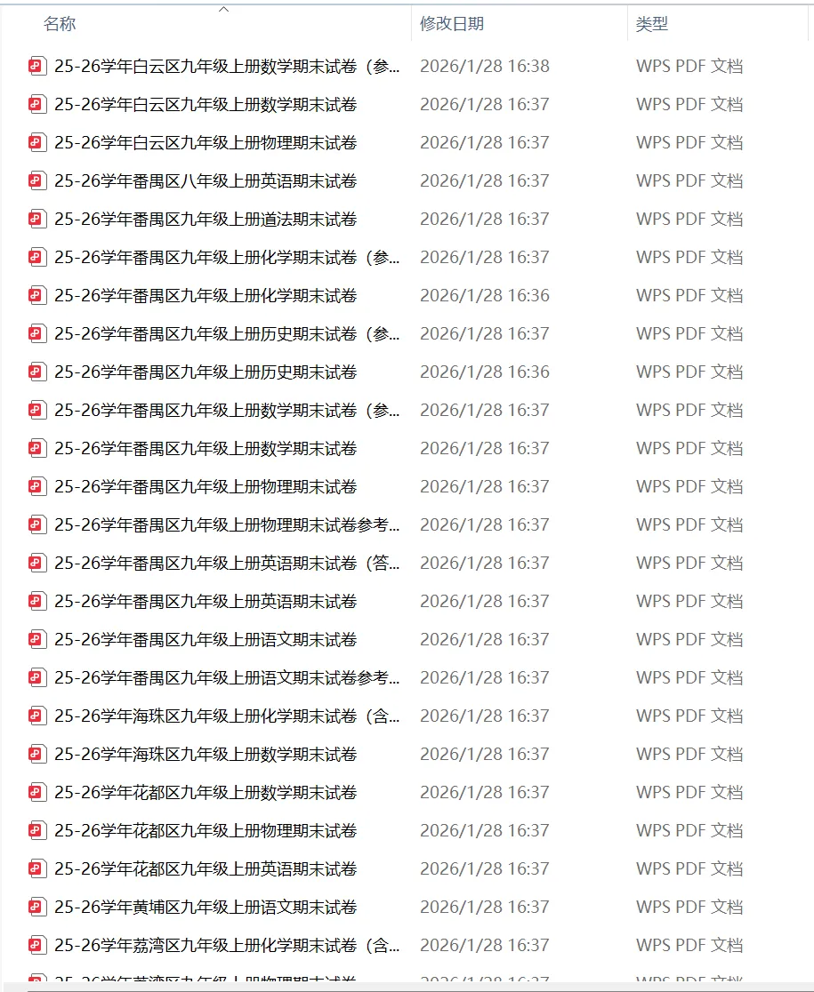 寒假复习没方向?广州7-9年级各区期末真题,免费领取!