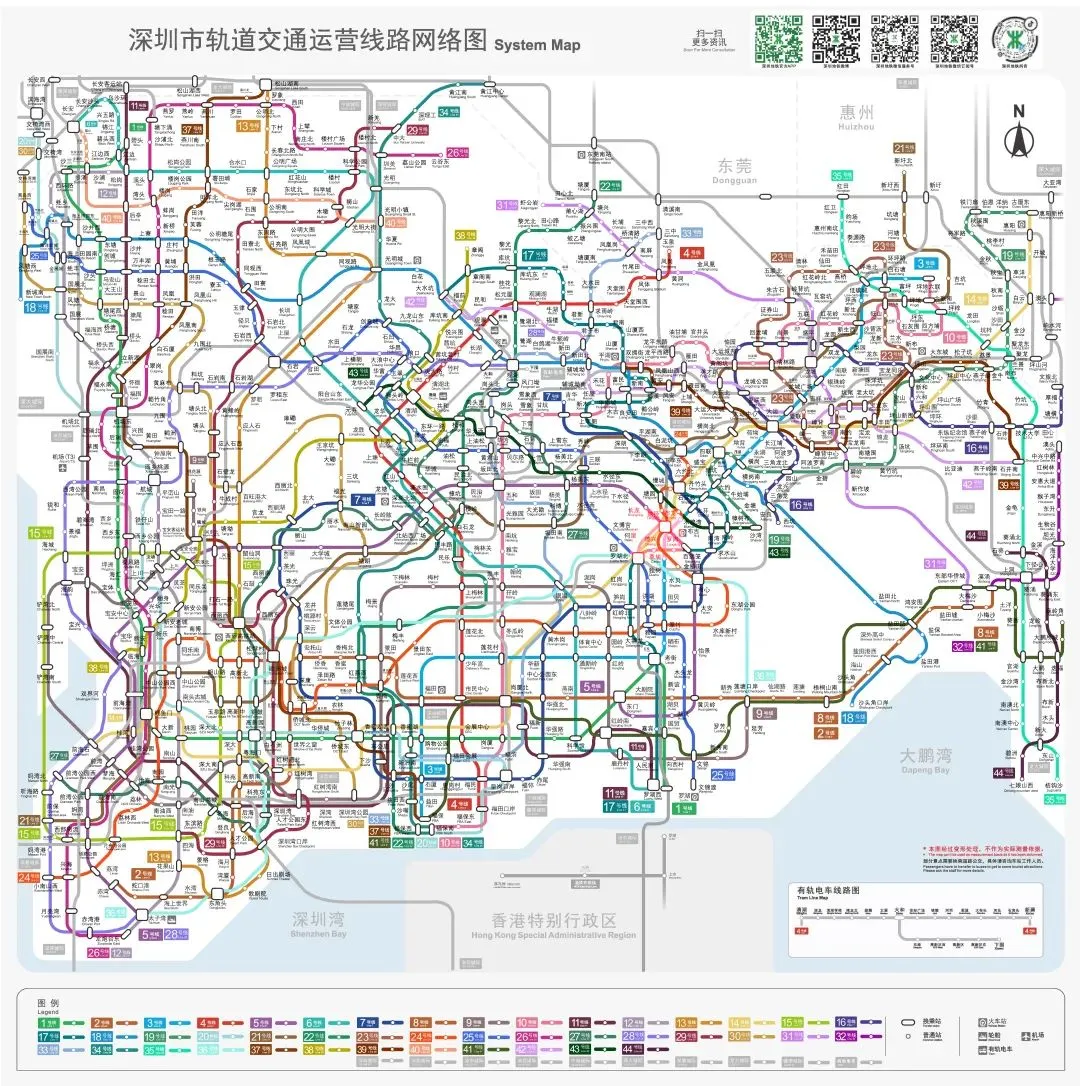 按照规划,至2035年,深圳将建成33条线路、总里程1335公里的轨道网络,是目前已开通里程的4.7倍,届时密集轨道交通网将覆盖全市,并加强深圳与周边城市之间的联系。