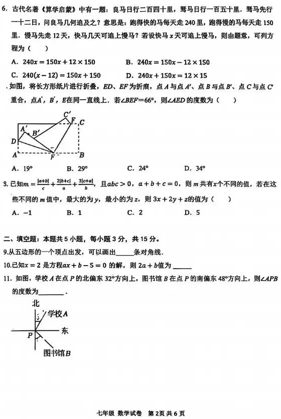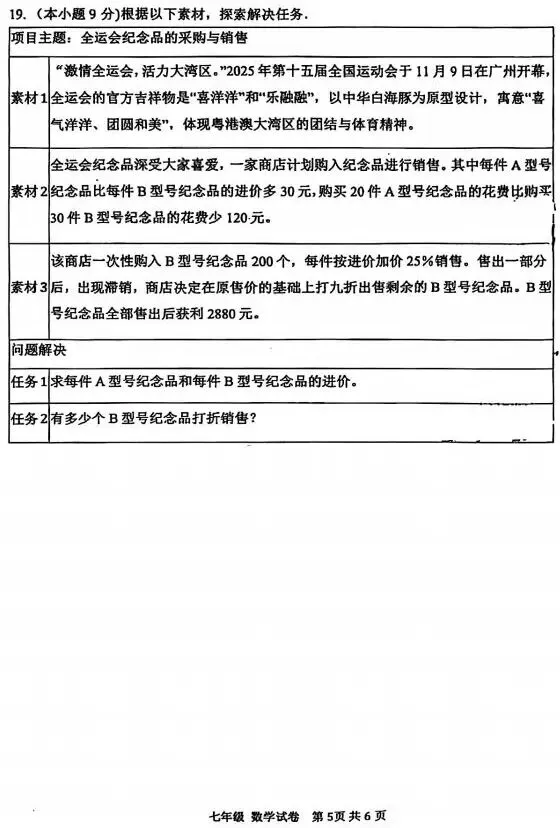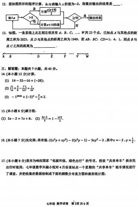 >深圳中学2025-2026学年七年级(初一)上期末考试数学试卷