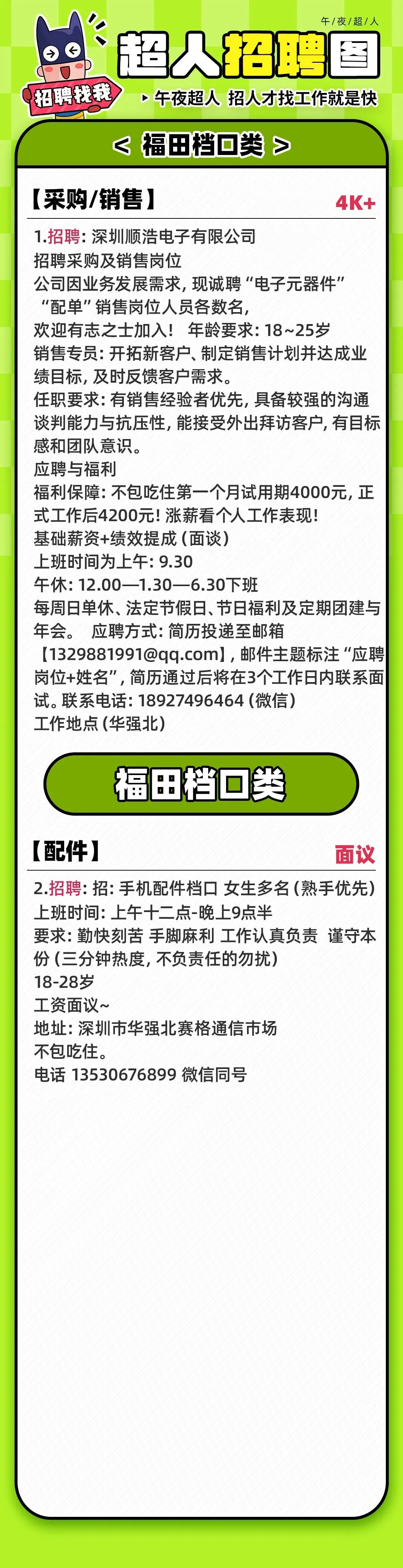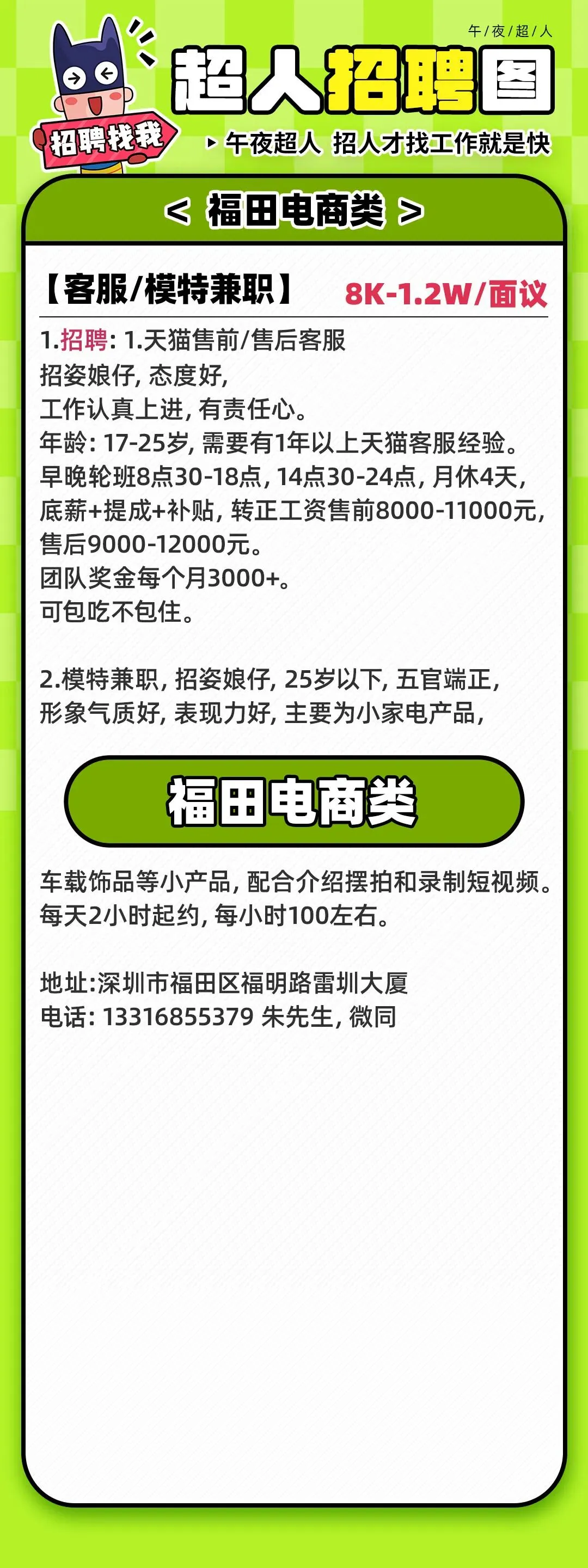 【深圳兼职】2月1号日结兼职速递/档口售卖/促销人员/酒店活动/宴会服务/登记执勤/活动协助/等你来!