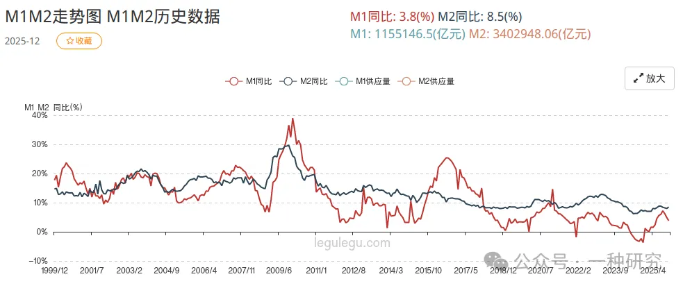 最新数据显示,M1增速降到3.8%,M2增速升到8.5%。“剪刀差”扩大到-4.7%。