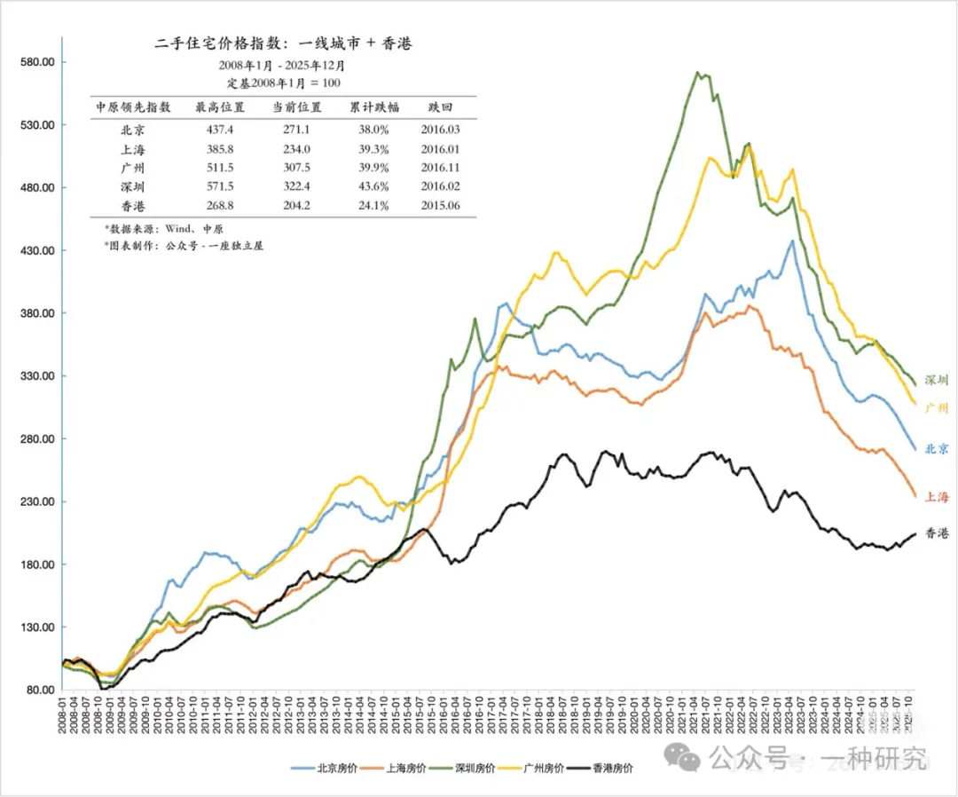 3. 房价:一线城市跌得挺深,平均跌幅超过40%,还没看到止跌迹象。
