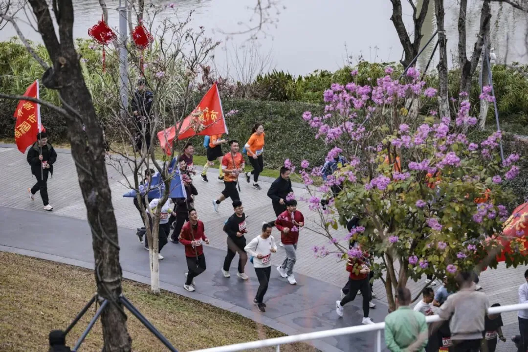 上午8时50分,东莞中心公园热闹非凡。参加活动的广大市民在专业运动教练的带领下,全身心投入热身活动,展现出健康向上、充满活力的精神面貌。9时整,伴随着篮球名将杜锋、崔永熙发出的鸣笛声,1000多名市民从东莞中心公园起点欢乐开跑。通过健康、快乐的迎春跑方式,参与者们共同传递新年新气象、人人步步高、生活日日新、身体更强健的美好祝愿。