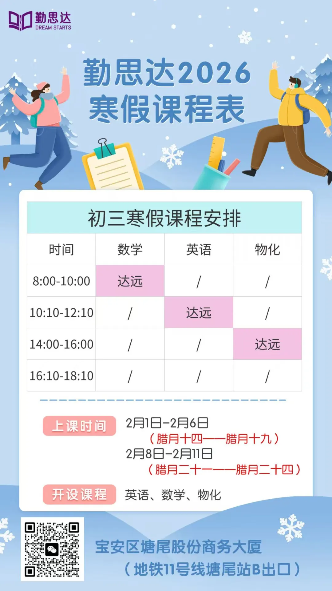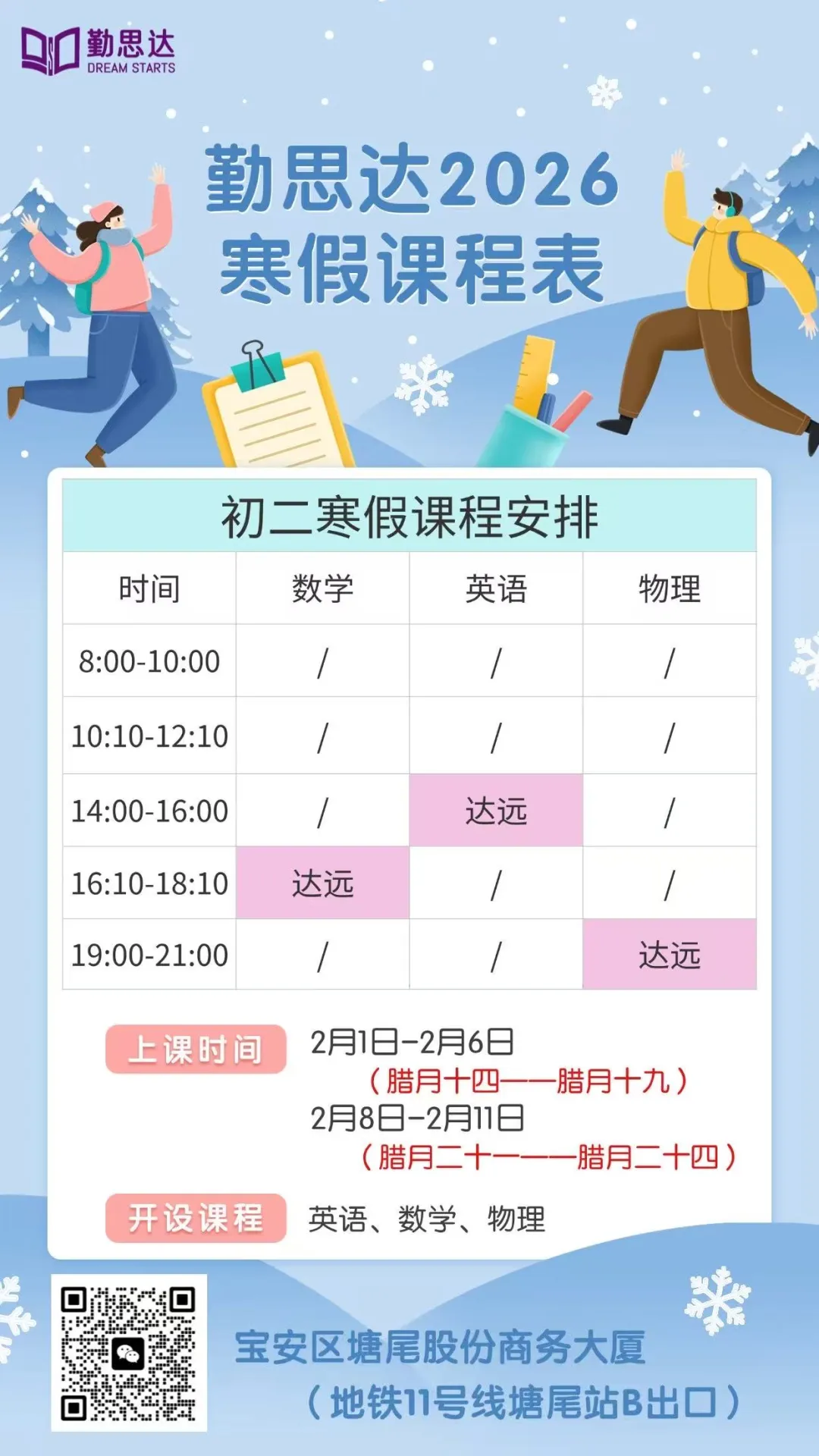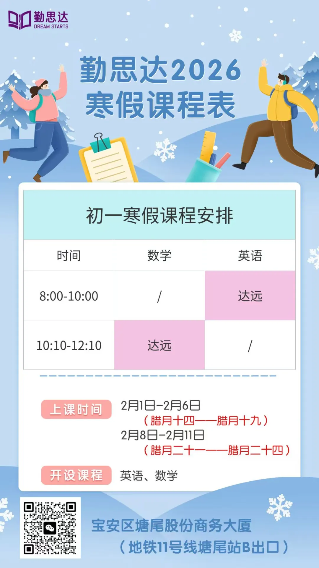 深圳的初高中学习节奏快、考点密,开学后课堂进度一路向前,几乎没有时间回头补漏洞。而寒假的整块自主时间,正是弥补差距、拉开距离的唯一窗口:✅ 别人躺平放松,你高效学习,一天抵三天,轻松积累上百小时的学习优势;✅ 趁期末知识还在“保鲜期”,及时复盘错题、补全漏洞,避免旧账叠新账;✅ 提前衔接新学期重难点,开学后不用被动适应,直接进入拔高状态;✅ 养成自律的学习习惯,这是比分数更重要的、伴随整个初高中的核心能力。对深圳学子而言,寒假的差距,就是开学的差距;寒假的付出,直接决定下学期的学习状态和排名走势!