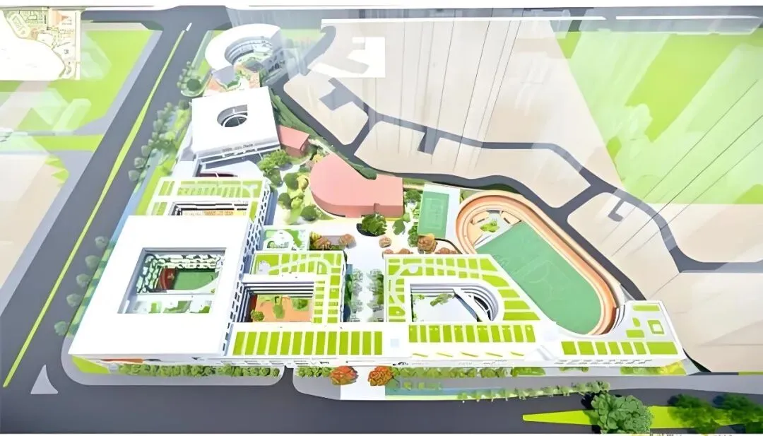学校占地面积31566㎡,建筑面积71214㎡,总投资5.7亿元,设计规模72个班,提供3360个学位