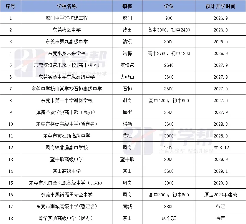 家长提问:在2024年和2025年9月东莞十一中学和东莞十二中学正式开学,所以请问2026年9月将有哪些公办高中学校正式开学。