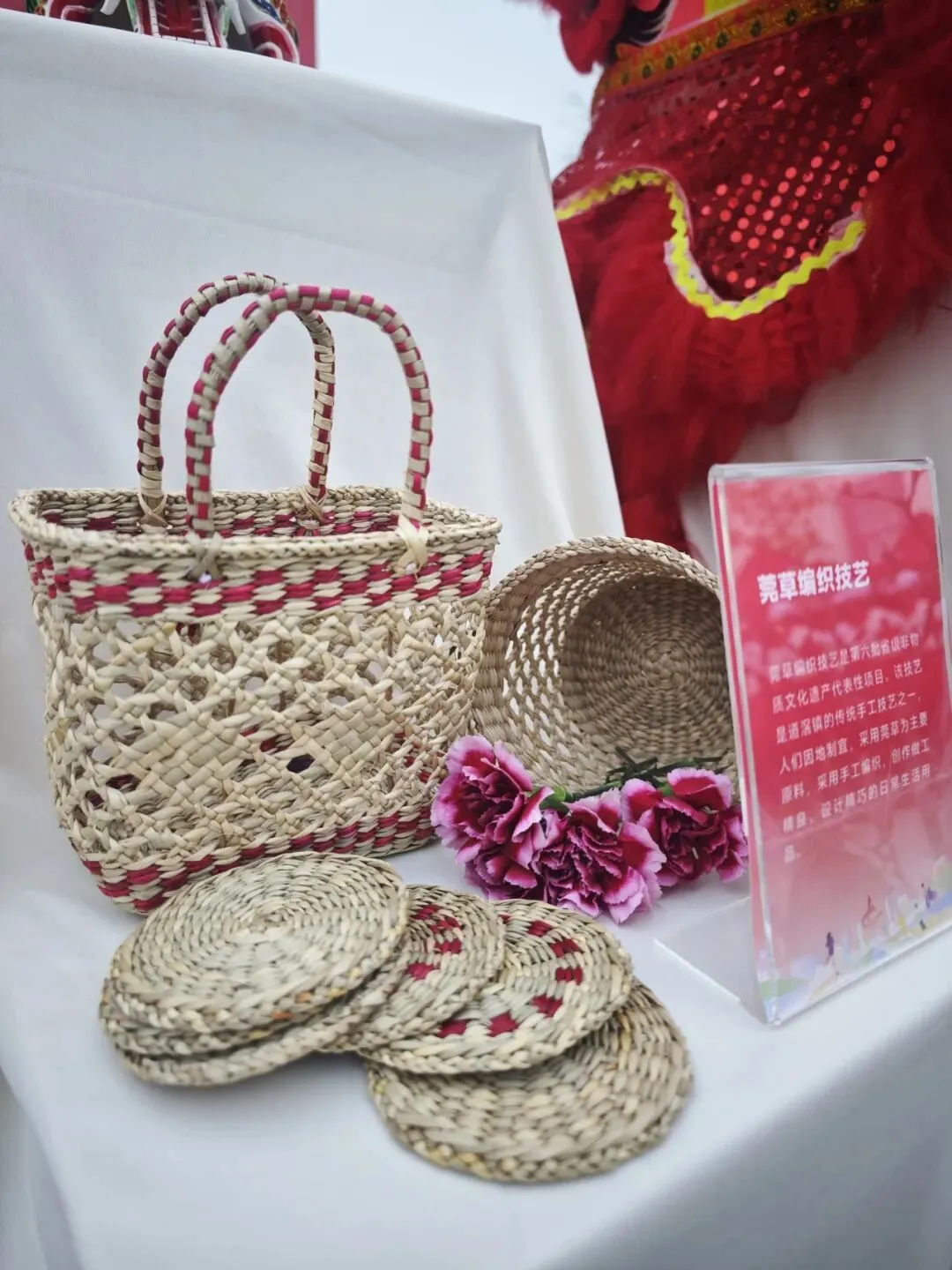 活动现场集中展示千角灯、龙舟、醒狮、红漆描花木屐、莞草编织、麒麟、潮绣(寮步)等极具东莞地域特色的非遗项目。